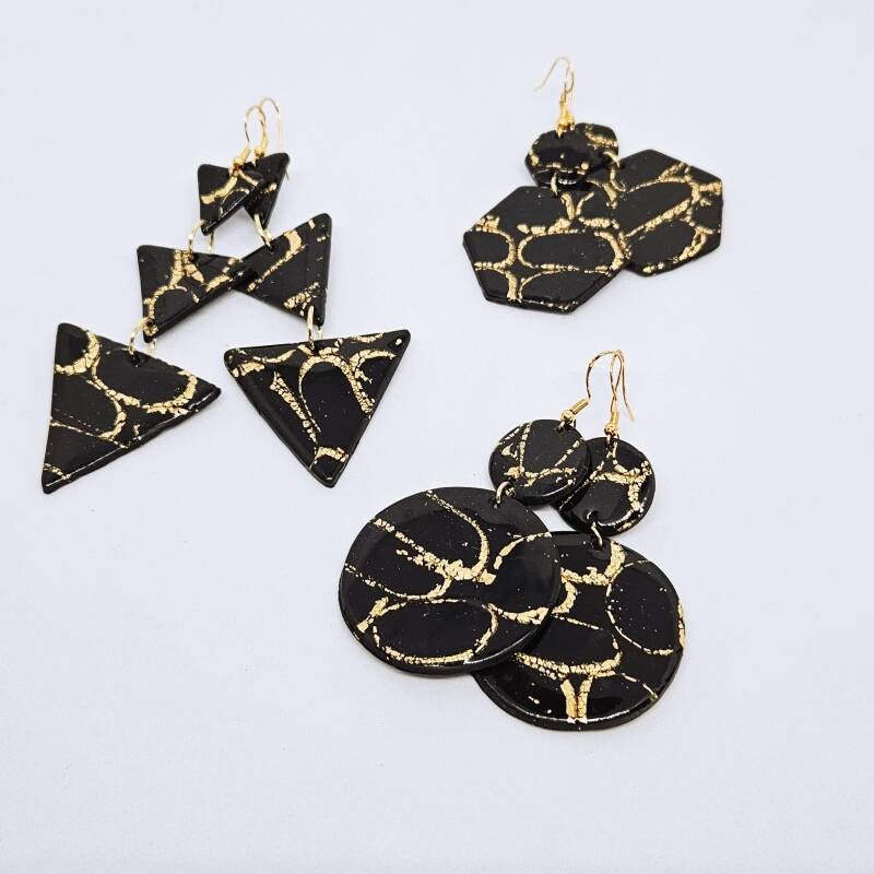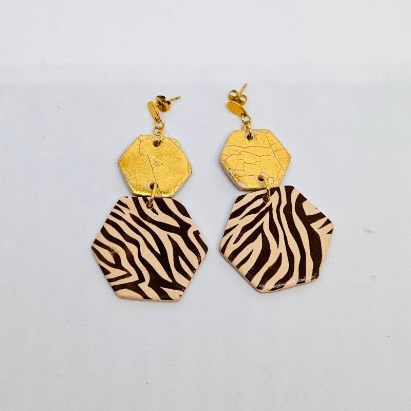 Boucles d'oreilles avec cadre doré et rond et d'un tissu Wax pris dans de fines couches de résine.