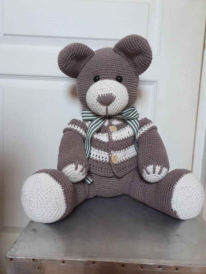 Cet ours bien portant est entièrement réalisé en crochet